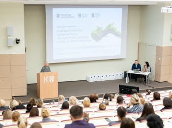 Absolventus taip pat pasveikino KU tarybos pirmininkas Arnoldas Šileika bei KU studentų sąjungos prezidentas Augustas Andruška.